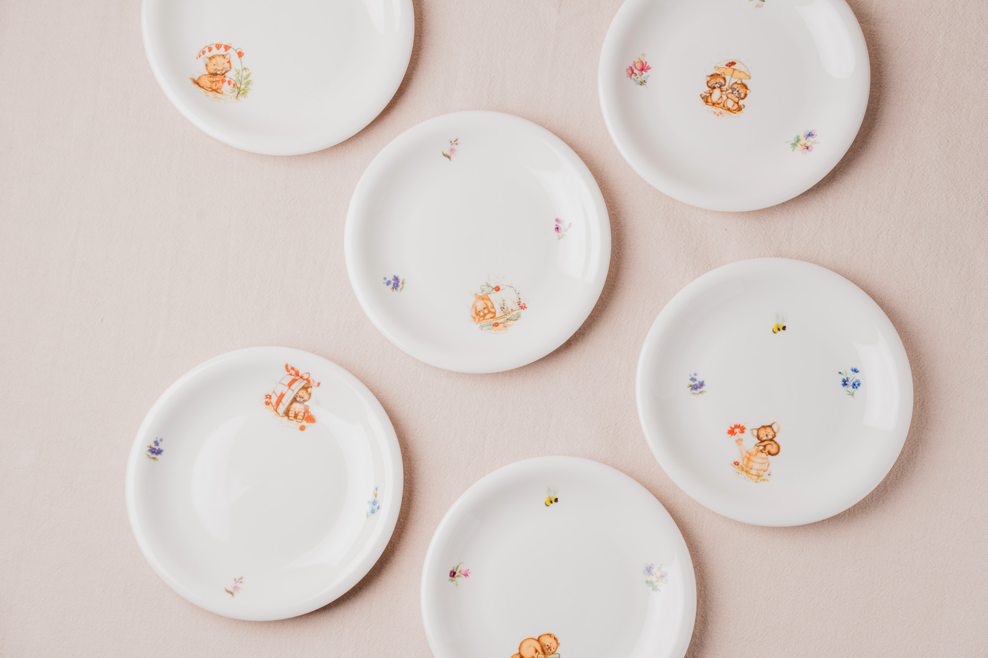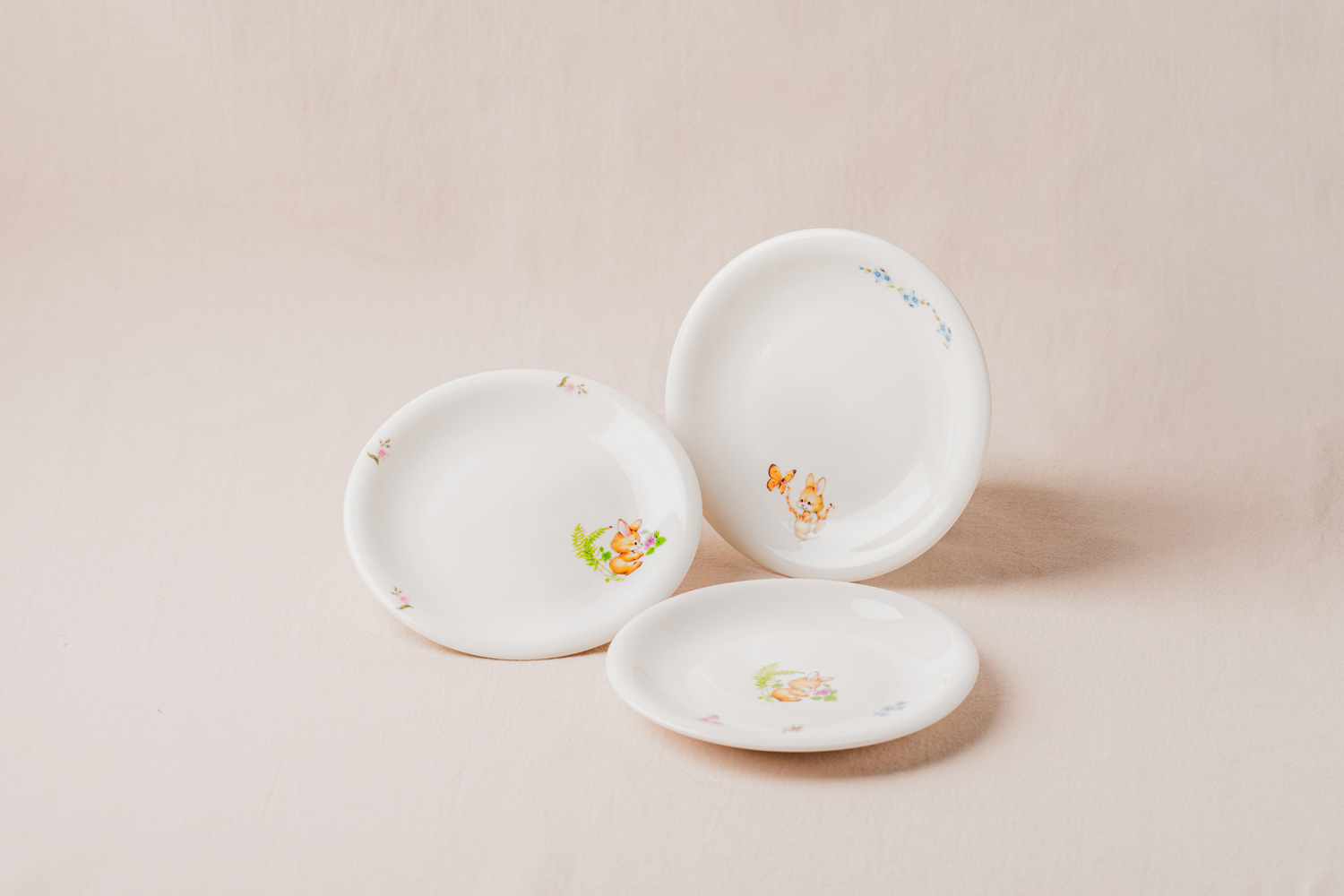 白磁器に転写シートを丁寧に貼って仕上げた食器です。